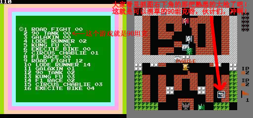 | | 合卡 | 本游戏用FCE Ultra模拟器玩时显示的是260合1,而用NnnesterJ模拟器玩时显示的是150合1,大家可以看看抓图。模拟器在游戏工具中。 |