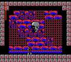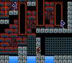 这时带着红水晶球往回走到城市1,从城市1往右走,走到第二个有岔路的地方如图10所示,走下楼梯,然后往右走过山洞后会来到如图11所示的地方,面前是个小湖,这时按START键把红水晶球选中后,跪在小湖前的石块上(即按住方向下键不放),一会儿后画面会向下移动,小湖下面出现了一条楼梯,走下去后会来到一座心脏之馆前。 走进心脏之馆后,一路向右走,来到如图12所示的地方,跳上对面的石块上,再跳到对面的如图13所示石墙中(那面石墙是假的,用圣水瓶可以扔过去,所以要多多用圣水瓶来探路),然后一路向右下方走(任何一个鬼城的放圆球的房间都在右下方,所以进鬼城后如果你不知道要怎么走的话,就尽量向右下方走吧),不久你就会来到放圆球的房间中,用木桩把圆球打碎后会得到德拉克拉伯爵的心脏,这时你就可以出心脏之馆了(别忘了在出心脏之馆前去向心脏之馆中的商人买一个木桩呀)。