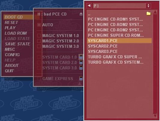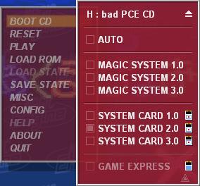 5¡¢Ñ¡ÔñSYSTEM CARD 2.0£¬È»ºóµãµÚÒ»ÏîH:bad PCE CD£¬³öÏÖÏÂͼµÄ½çÃæ£¬°´RUN¼ü¼´¿É¡££¨×¢£º´Ë´¦µÄH:Ϊ¹âÇýÅÌ·û£¬Êµ¼ÊÖпÉÄÜËùÊö²»Í¬£©